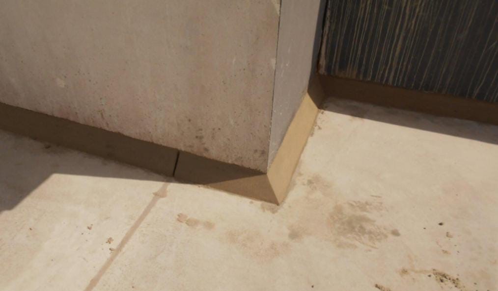 Once the screed is completely cured, all of the joints created by the flex cell board will be opened and threatened with ACT sealant with a 20 mm diameter backing rod for accommodating the movement of the concrete. Then, prepare angle fillet (100x100mm) all around parapet skirting and concrete foundations.